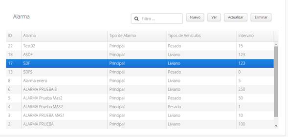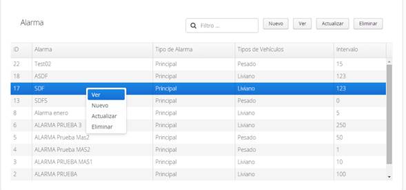 seleccionaremos una alarma, si presionamos click derecho o dejamos seleccionado