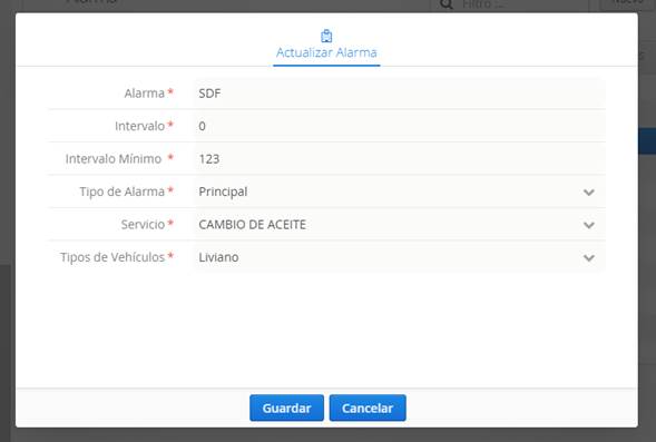 también nos permitirá editar ciertos campos del vehículo para nuestra