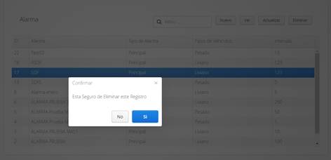 si estamos seguros de eliminar dicho registro, al presionar si eliminara el